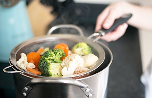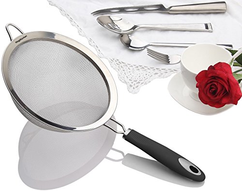 Magikuchen Colander Fine Mesh Stainless Steel Sieve/Strainer (Classic Black) 8" with Long and Heat-Resistant Handle easy to filter Quinoa and more!