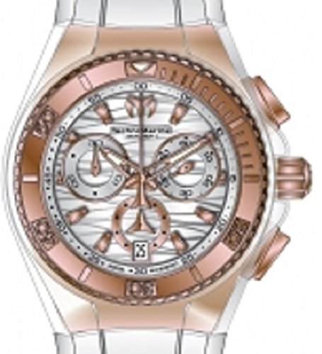 -. Feature : Chronograph functions with 60 second, 30 minute and 1/10 of a second subdials; date window at 6:00; set includes: black silicone strap and white plastic case cover; screw-down crown; sapphire crystal / Silver dial with rose gold tone and white hands and rose gold tone hour markers; luminous; unidirectional bezel; 14k rose gold IP stainless steel case with transparent plastic cover / Swiss-quartz Movement / Case Diameter: 40mm / Water Resistant 200m (660ft): in General, Suitable for Professional Marine Activity and Serious Surface Water Sports, but not Diving