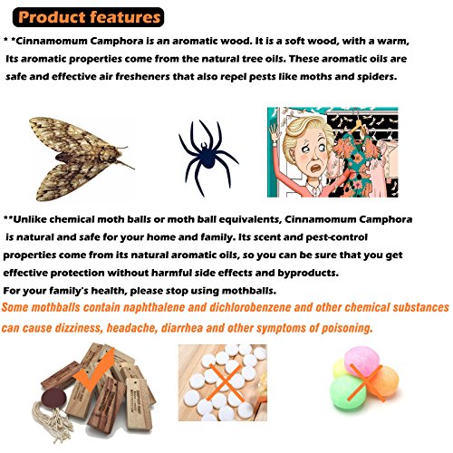 CHEMICAL FREE,Cinnamomum camphora blocks is the environmentally friendly and safe alternative to chemicals in keeping your clothes smelling fresh, repelling insects, and eliminating odors and mildew.