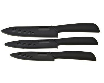 Awesome! Spectacular! Slick! Bright! Sharp! These are just a few words we can use to describe the new 3-piece Ceramic Knife Set from Chefware SolutionsTM. Adding these knives to your cutlery collection is just a small slice of heaven on earth! The cutting edge quality and design of these knives has traditionally been reserved for top chefs and gourmet cooks; but is now available for everyday use in any kitchen! These knives are not just fun they are functional; they are corrosion resistant with no metallic taste or smell allowing you to preserve the original quality of food; perfect for straight cuts of fruit, vegetables, and boneless meats.