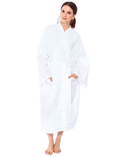 Waffle/Honeycomb Weave Cotton Kimono Spa & Bath Robe - 61" Width x 50" Long