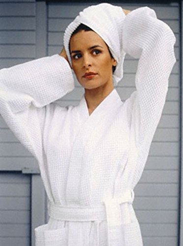 Perfect after the hot tub, bath, shower or sauna! White full length waffle robe is great for relax and lounging at home. The 100% cotton feel is an unique experience, a little luxury to slip on at anytime.