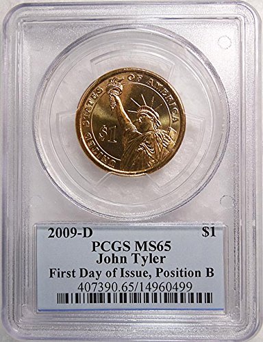 - 2009 D Pos. B John Tyler Presidential Dollar PCGS MS 65 FDI Presidential Label Holder