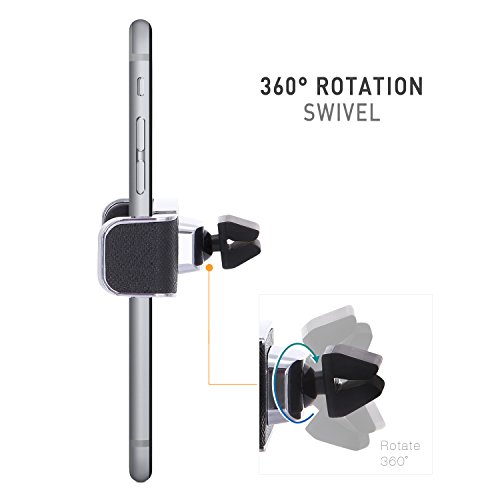 -. Feature : ELEGANT & CLASSY DESIGN : Premium genuine leather and stylish high quality metallic glossy chromium plating finish. You can add luxury and class to your vehicle. Simple and minimalist design perfectly matches interior in your car ! / U.S. Patent Pending Design / UNIVERSAL FIT - Easy of use sP.R.Ing loaded universal sliding holder rubber grip fits for most mobile phones, as well as their cases, and GPS upto 6 inch wide screen (2 inch ~ 3.4 inch width) / 360 degree ROTATION & SWIVEL : Fully adjustable with its versatile pivot joint for multiple viewing angles - portrait and landscape view / SECURE VENT CLIP - Silicone covered universal clip securely mounted onto most conventional air vent blade avoiding damage or scratch / PORTABLE STAND - Pocket sized holder can be used as travel stand and hands free phone cradle on desk or table top