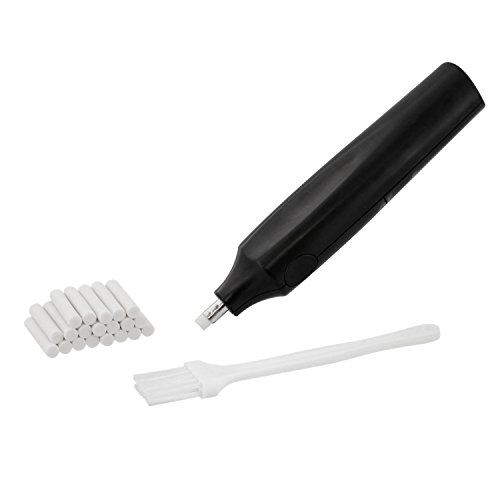 - REFILLABLE & BATTERY POWERED - Comes with 20 eraser refills and cleaning brush. Requires 2 - AAA Batteries that are not included