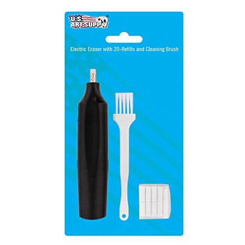 U.S. Art Supply Premium Electric Portable Battery Powered Artist Drawing Eraser - Cordless with 20 Refills and Cleaning Brush