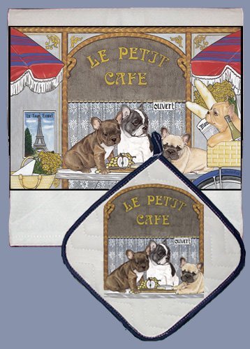 -. Title : Pipsqueak Productions DP971 Dish Towel and Pot Holder Set - French Bull Dog