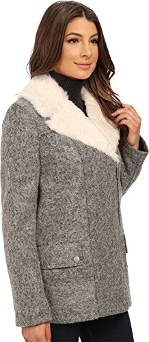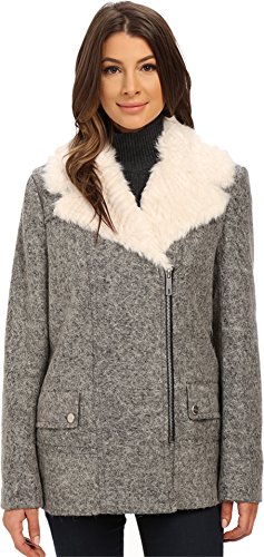 Kenneth Cole Women's Moto Wool-Blend Coat with Faux-Fur Collar