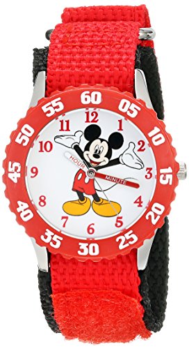 Round Time Teacher Stainless Steel Watch with Disney's Mickey Mouse character on dial.