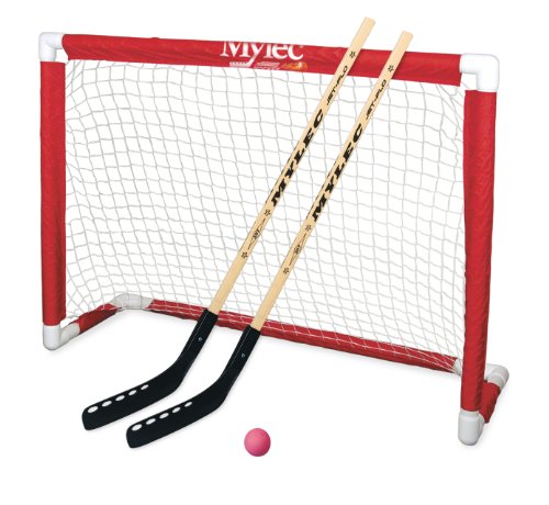 Studio : Mylec Inc Publisher : Mylec Inc Binding : Misc. Product Description Who says you can't have it all? The Mylec Deluxe Folding Hockey Goal says you can, and has the accessories to prove it. The durable PVC tubing creates a sturdy frame, while the sleeve netting systems assembles in just minutes for quick play, anytime. Complete with two 43-inch street hockey sticks and blade combos and one ball. Goal folds for easy, efficient storage. About Mylec Ice hockey without the ice was a pretty revolutionary shot attempt, and some might even say it was a crazy idea 43 years ago, but nevertheless a man named Raymond W. Leclerc pressed on. With 20 years of toy manufacturing experience and a lifetime love of all-things hockey, this proud Canuck developed the street hockey concept that’s so incredibly popular today. In 1970, he launched the Mylec Corporation and became a pioneer. Today, it’s hard to imagine a world without street hockey and even harder to imagine playing the game without Mylec gear! Mylec offers a wide range of products for both street hockey and roller hockey, as well as other sports and flooring products consumers love. Dimensions: 37H x 48W x 18D in.. Set with goal, 2 hockey sticks, blades, and ball. Durable 1 5/8-in. PVC tubing. Sleeve netting system assembles in minutes. Folds for easy storage. Recommended for Street Hockey only. 0