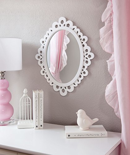Decorative Oval Wall Mirror, White Wooden Frame for Bathrooms, Bedrooms, Dressers, and Antique Princess Décor, Large