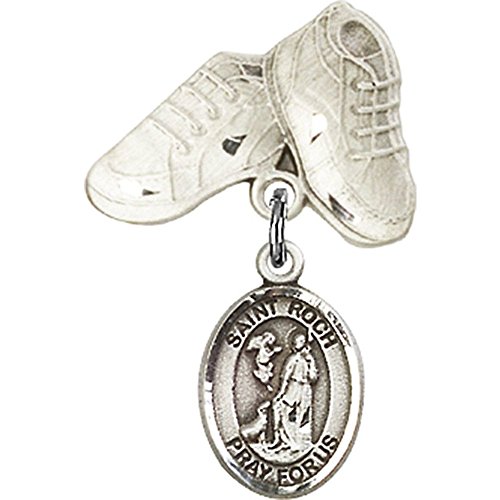 -. Title : Sterling Silver Baby Badge with St. Roch Charm and Baby Boots Pin 1 X 5/8 inches