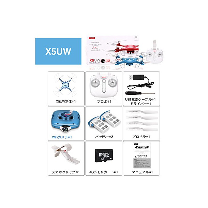 원본상품명: Syma X5UW Wifi FPV ドロン 720P HD カメラ 生中 リアルタイム RC ラジコン クアッドコプタ マルチコプタ 4GB SDカド付 指定軌道飛行 バロメタ 高度維