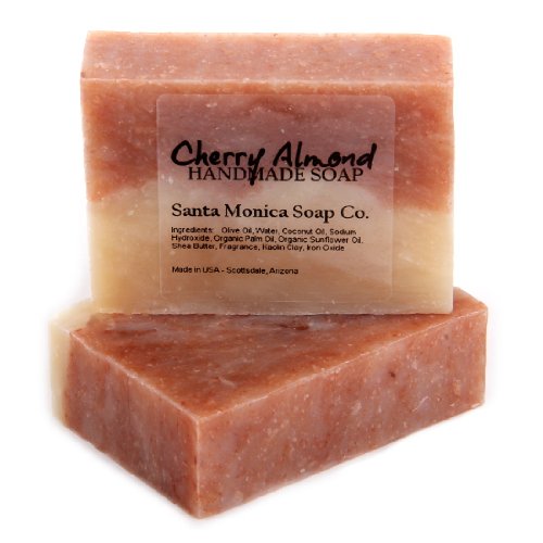-. Binding : Misc. -. Brand : Santa Monica Soap Co. -. EAN : 0820103778947 -. Feature : High quality vegetable based ingredients. Cold processed and made from scratch / Made from a mixture of olive oil, coconut oil, sunflower oil, organic palm oil and shea butter. / Full size 4 oz. bar / Vegan, No GMO oils. Made in the USA -. IsAdultProduct : 0 -. Label : Santa Monica Soap Co. -. Manufacturer : Santa Monica Soap Co. -. Model : SMS1035 -. MPN : B01LWMGXVG -. PackageQuantity : 1 -. PartNumber : B01LWMGXVG -. ProductGroup : Beauty -. ProductTypeName : MISC_OTHER -. Publisher : Santa Monica Soap Co. -. Studio : Santa Monica Soap Co. -. Title : Santa Monica Soap Co. Handmade Soap - Cherry Almond by Santa Monica Soap Co. -. UPC : 820103778947
