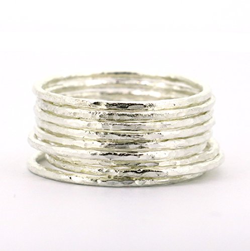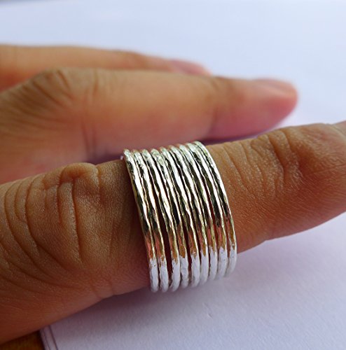 -. Title : Lotsale 9pieces Solid 925sterling Silver Hammered Stack Ring