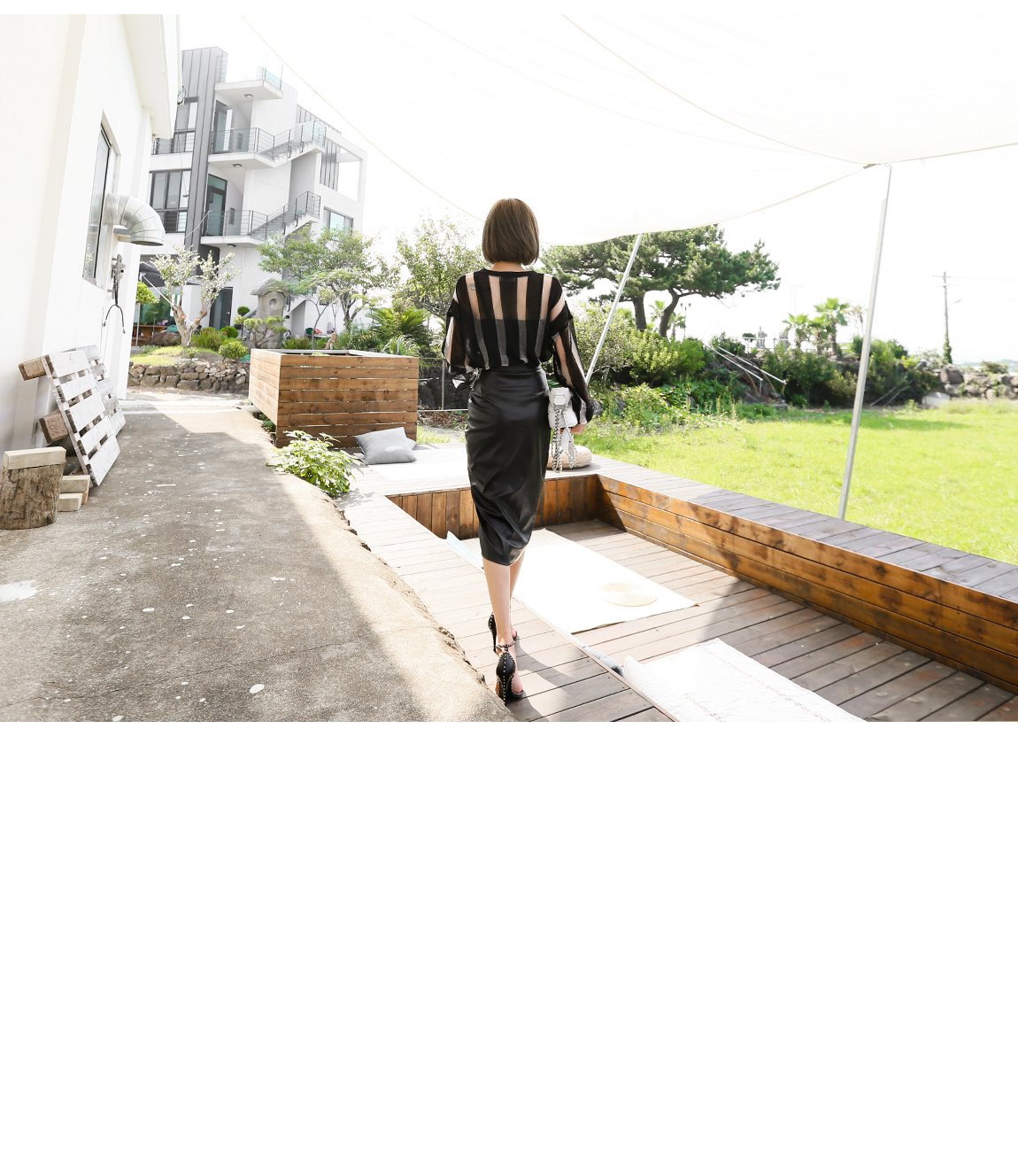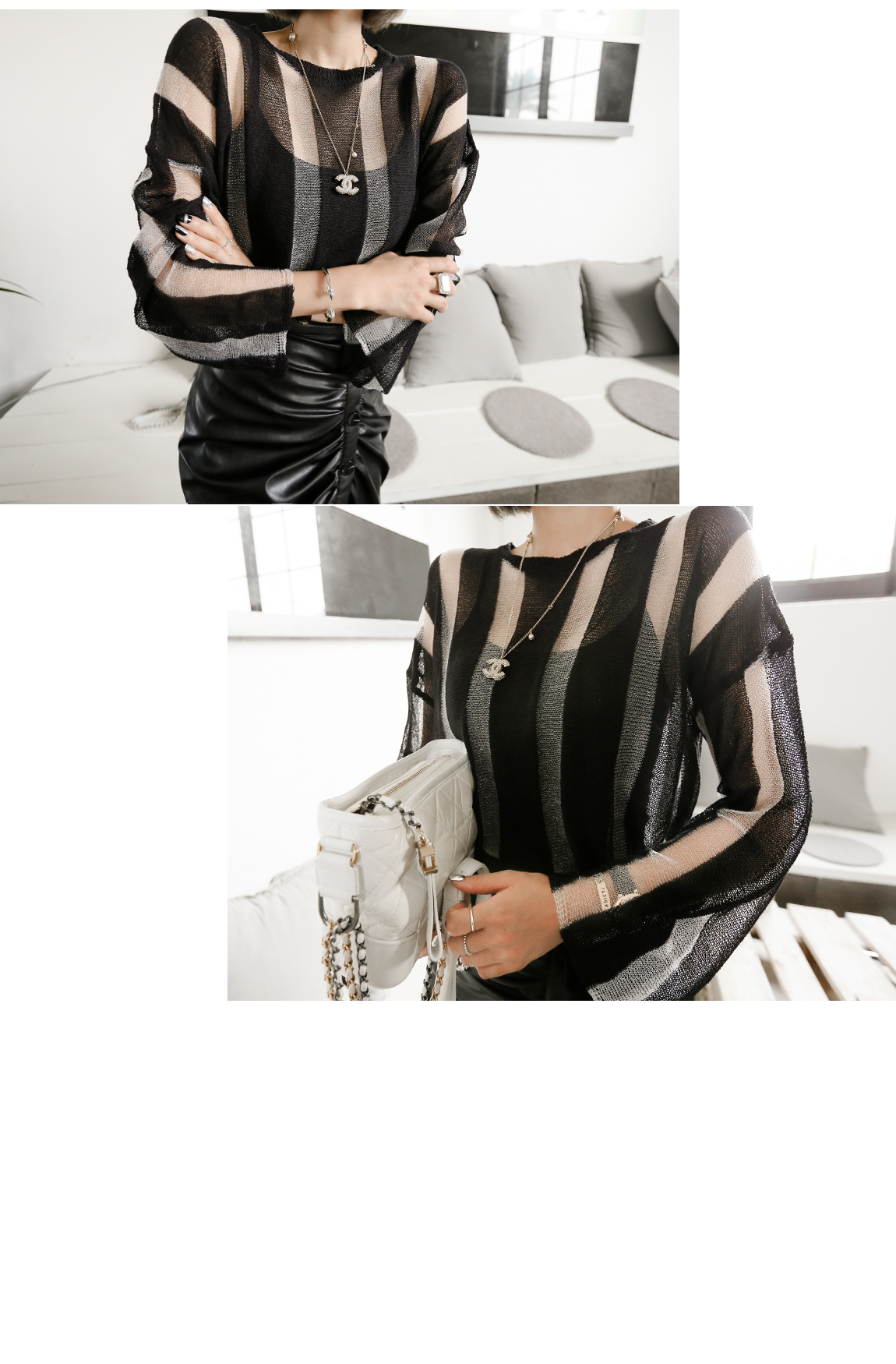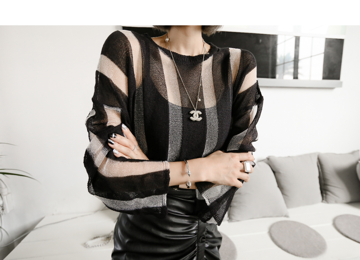 配色のストライプ・パターンと、自然なシースルー・デザインで