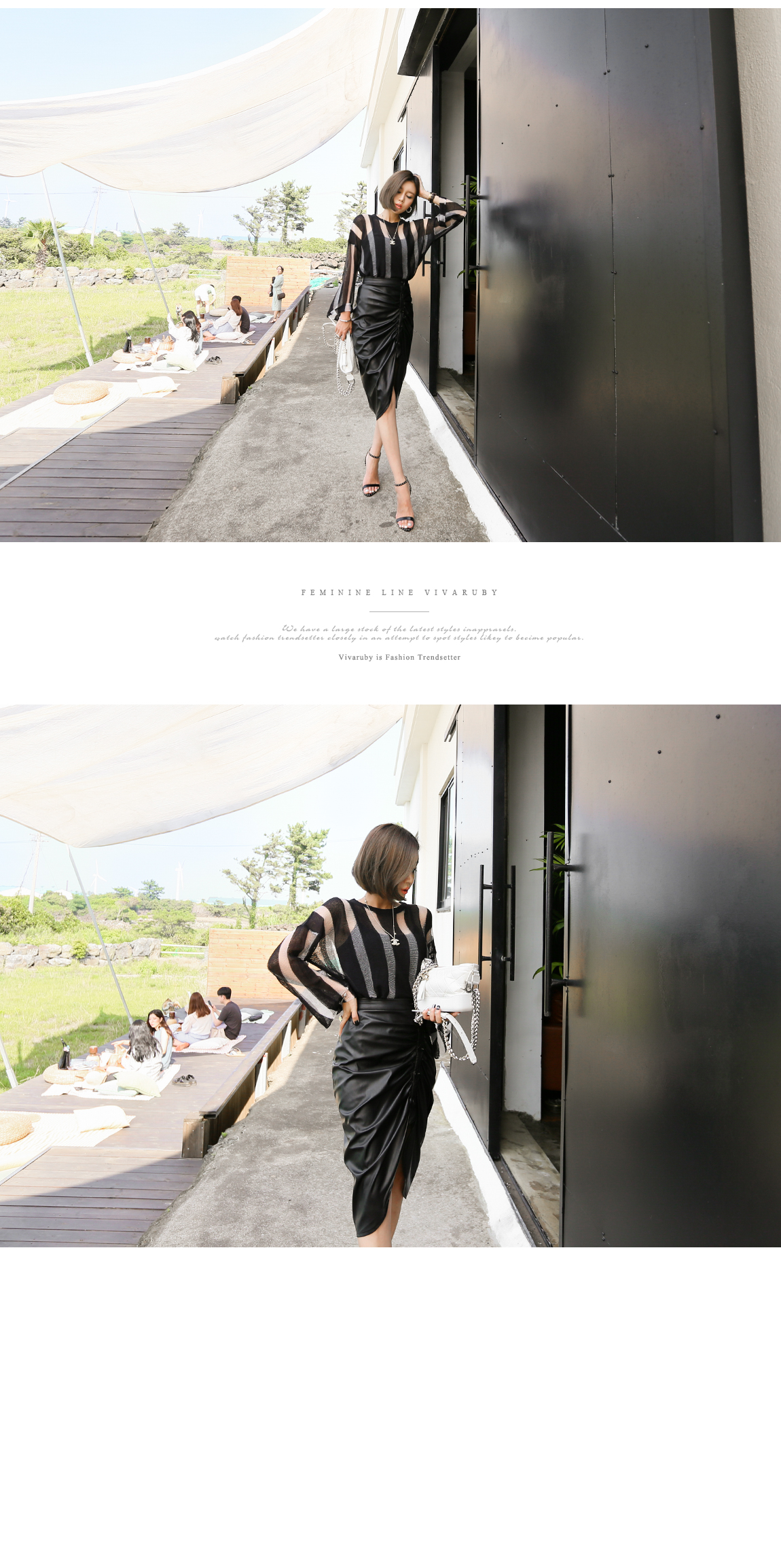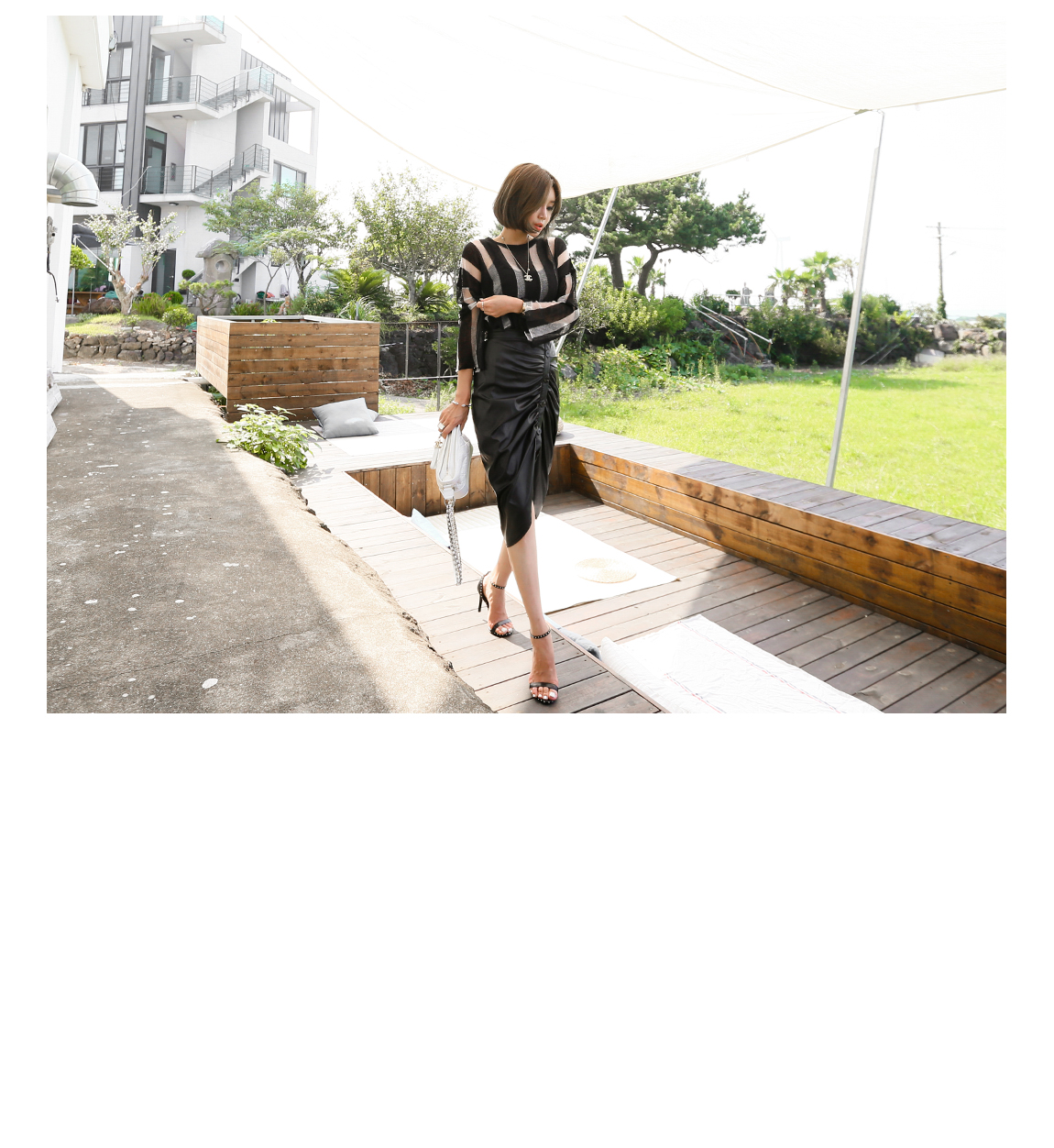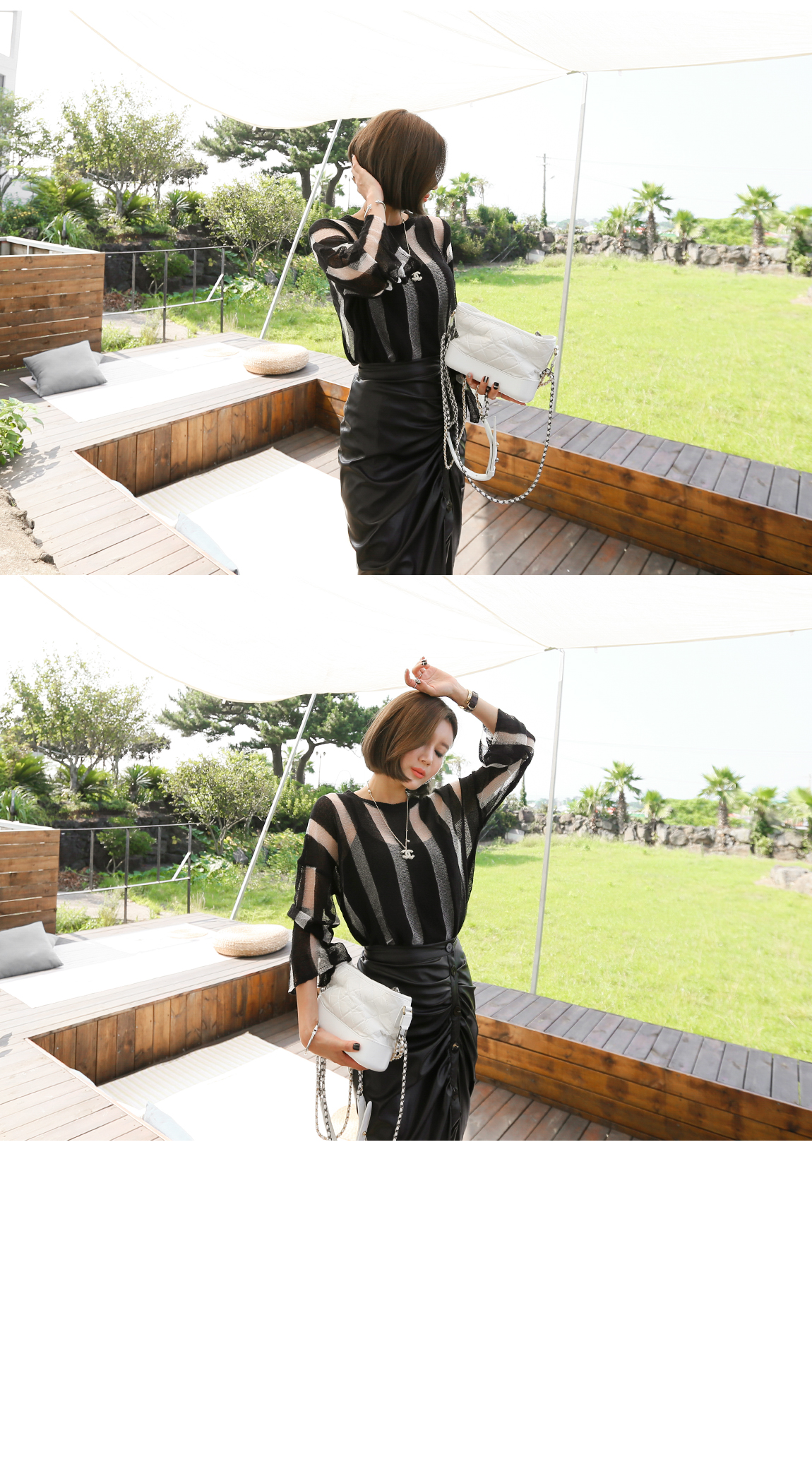 配色のストライプ・パターンと、自然なシースルー・デザインで