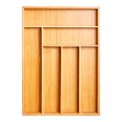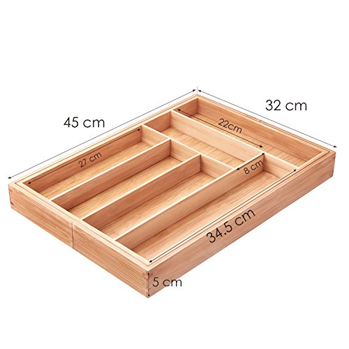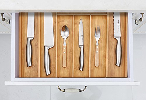 - SAFE AND EASY TO CLEAN: Made of natural, long-lasting bamboo, Put an end to the chaos in your kitchen drawers, This kitchen organiser helps you keep cutlery orderly and easy to find, and easy to wipe clean with soap and water