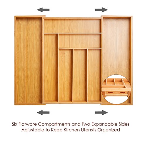 - AMPLE SPACE: At least 6 differently, sized compartments provide plenty of room, 8 compartments when fully extended, Even long knives and cooking utensils will fit