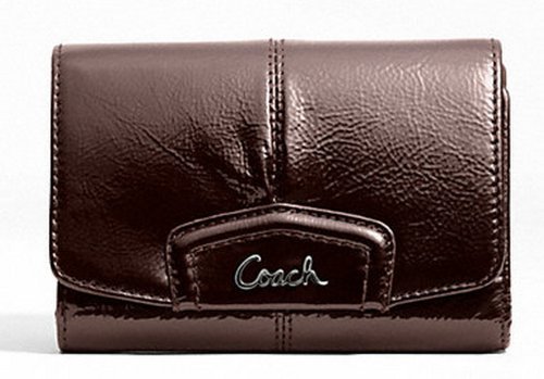 COACH ASHLEY PATENT COMPACT CLUTCH SILVER MAHOGANY STYLE: F48248
