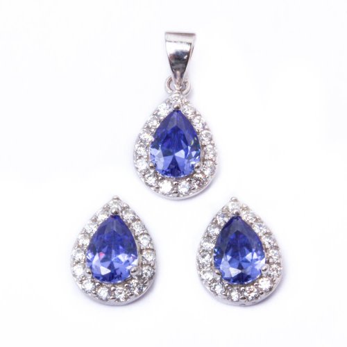 -. Title : Pear Shape Simulated Tanzanite & Cz .925 Sterling Silver Earring & Pendant Jewelry set
