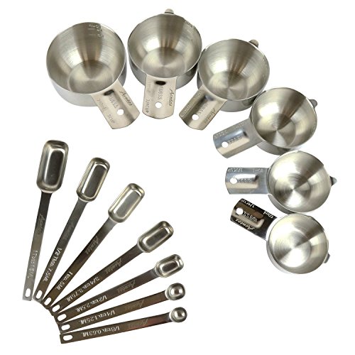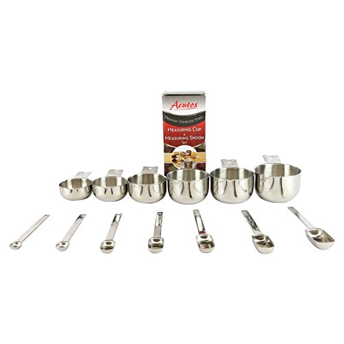 Acutos 13-Piece Stainless Steel Measuring Cups and Spoons Set – 6 Cups & 7 Spoons Nested Perfectly to Measure Dry and Liquid Ingredients - Premium Metal & Stackable