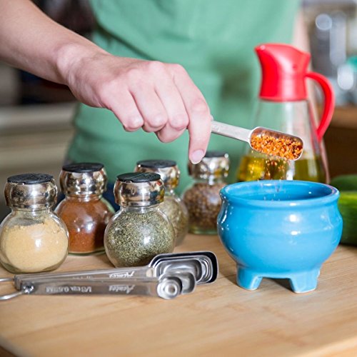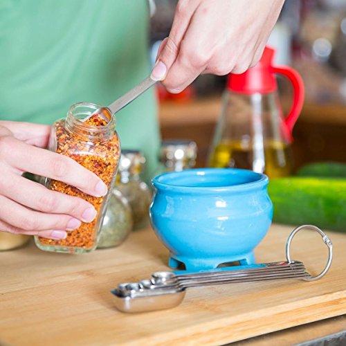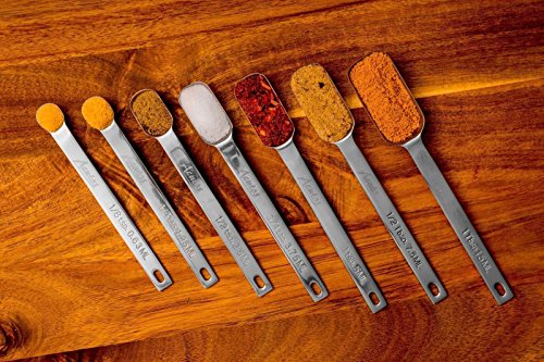 - ENGINEERED WITH ACCURACY AND PRECISION to give you better and consistent results. - 6 Cup Sizes - 1/4, 1/3, 1/2, 2/3, 3/4, 1 Cup. 7 Spoon Sizes: 1/8 tsp(a dash), 1/4 tsp, 1/2 tsp, 3/4 tsp, 1 tsp, 1/2 Tbsp and 1 Tbsp. The UK metric equivalent is etched on each cup and spoon, so they’re great for US or UK recipes. Spoons are narrow & rectangular for dipping into small spice jars. Your 1 tablespoon functions easily as a COFFEE SCOOP since 2 tablespoons are equal to 1/8 cup.