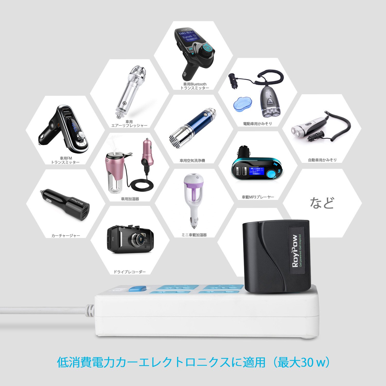 It is specially designed for onboard electronic equipment of 30W or less such as a razor for a moving car, a car charger etc.