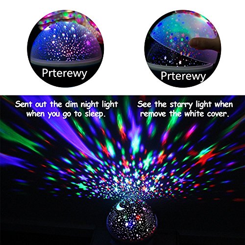 MULTI-FUNCTIONAL LAMP ! - If you have been looking for a unique night light lamp that will light and project amazingly across the room your search is over ! That's because our lamp can function as a regular lamp with white light and if you take the white dome off, it will project multiple bright & clear colors of the stars and the moon, which means that you'll have many choices regarding the combination of the colors and your kids will never get bored ! Guaranty !