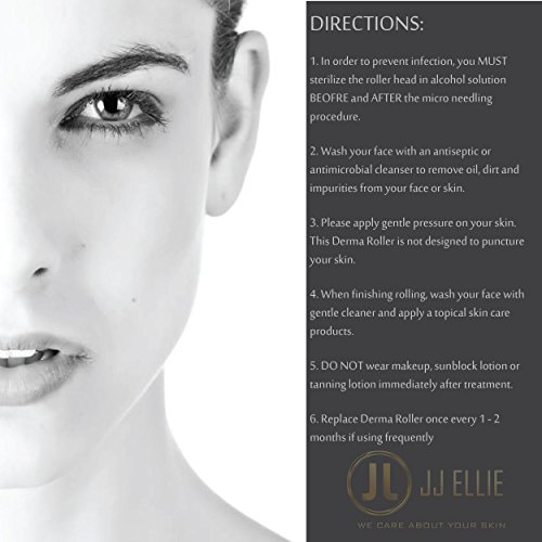 -. Feature : ✔️ A COMPLETE ALL-IN-ONE SKIN CARE SOLUTION: Guaranteed to reduce the appearance of wrinkles, cellulite, stretch marks, wrinkles and scars giving your skin a smooth and healthy glow. / ✔️ COVERAGE: The JJ Ellie Derma Roller is a 0.25mm cosmetic needling tool and can be used on the face, neck, nose, scalp and other wanted areas to improve your skin. / ✔️ SAFE AND EFFECTIVE: The JJ Ellie Derma Roller has been carefully designed to be safe for home use. / ✔️ 100% MONEY BACK LIFETIME GUARANTEE: We promise you will have excellent results with the JJ Ellie derma roller. Target unwanted acne, wrinkles, cellulite, stretch marks and create beautiful looking skin. Enjoy a lifetime of youthful, healthy, clear-looking skin without any risk. If for any reason the JJ Ellie Derma Roller fails to meet your expectations we offer a 100% money back lifetime guarantee.