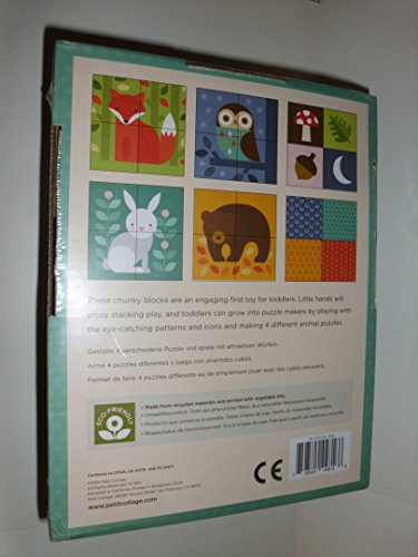 Little builders love to play with My First Block Puzzle! The beautiful blocks come in vintage color schemes and feature geometric patterns. Made from recycled materials and printed with vegetable inks, these easy to grasp 3? blocks are light-weight and perfect for tiny digits to manipulate. Kids will light up as they complete one of the 6 included vignettes or create a picture of their own. Blocks are great for building up motor skills and pattern recognition. For ages 2 and up. Size: 3? x 3? Blocks, Puzzle measures 6? x 6? x 3?. Style: Woodland.Feature