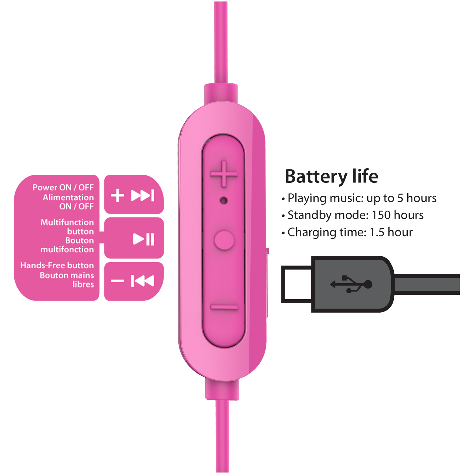 Put some hands-free music and phone calls in your life with the high-performance iLuv Bubble Gum Air Inner Ear Bluetooth Headphones. Designed to be your everyday earphones, Bubble Gum Air boasts a durable design that resists wear and tear, an in-line remote that allows you to control the volume of your music, and a tangle-resistant cable. Play music for up to five hours and charge your headphones in just 1.5 hours. Bluetooth effective range up to 33 ft. (10m). iLuv Bubble Gum Air Inner Ear Bluetooth Headphones (Pink)