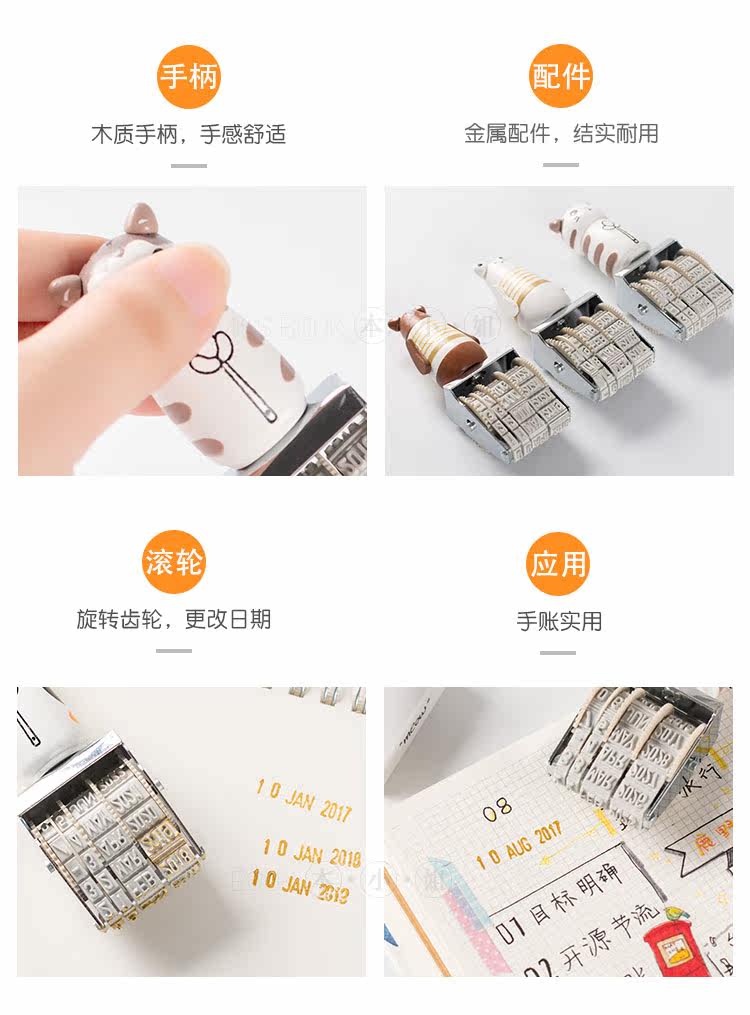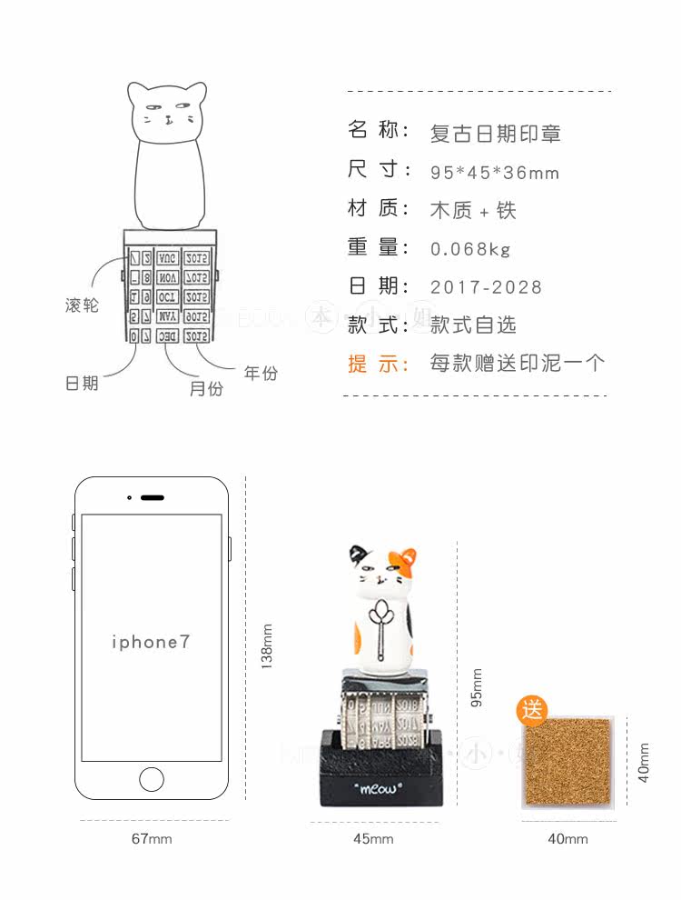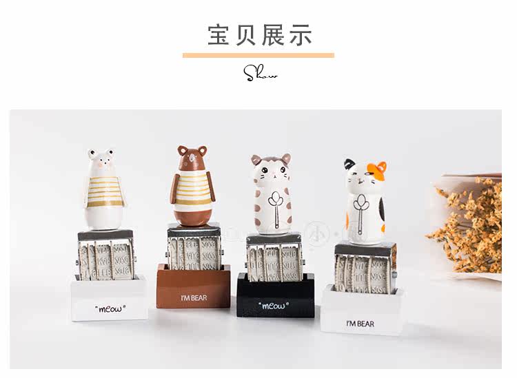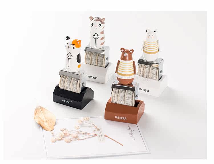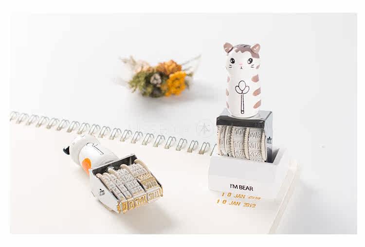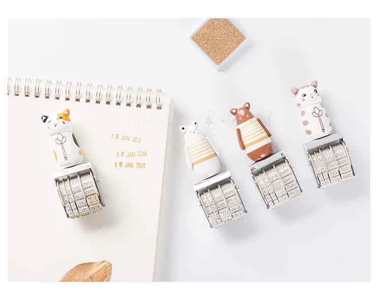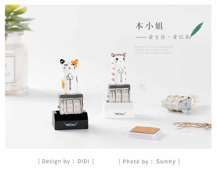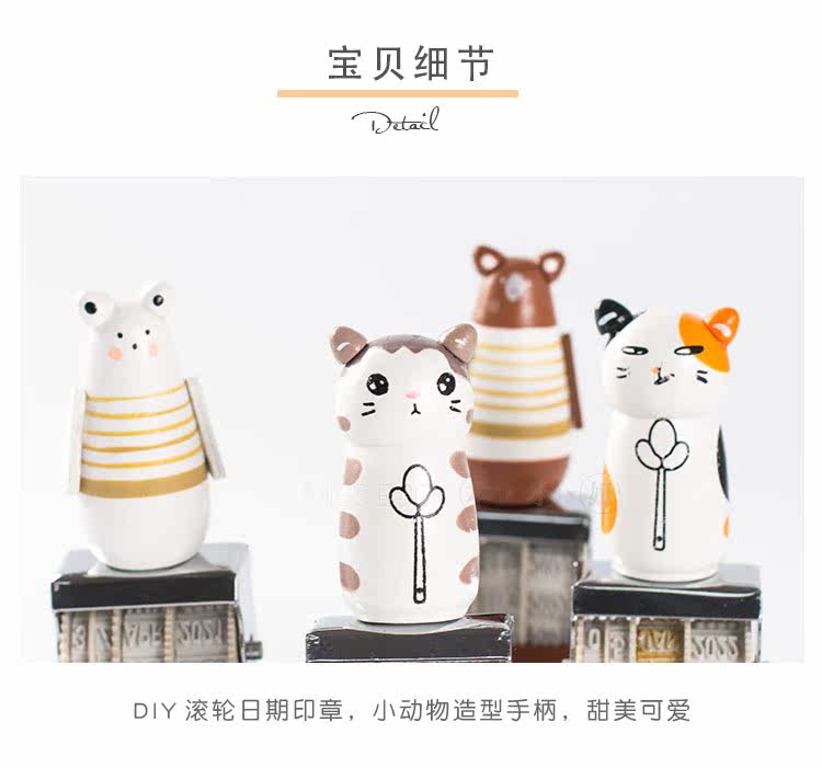 可爱猫咪手账日期印章 复古可调节日期章 DIY个性滚轮印章