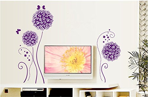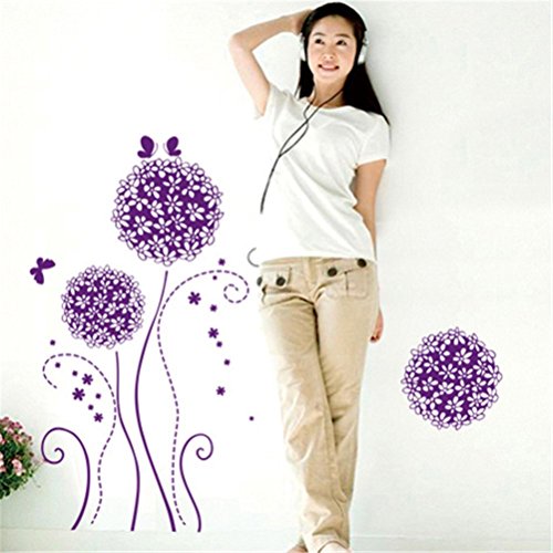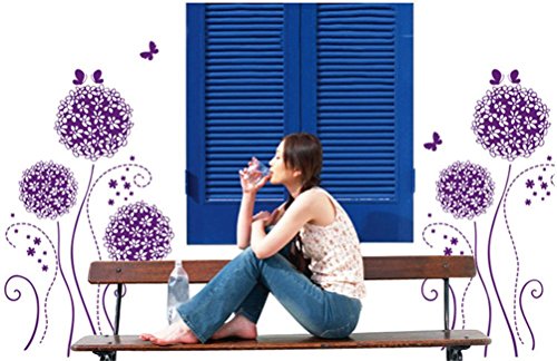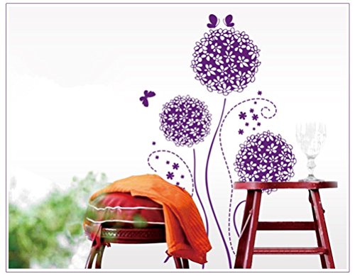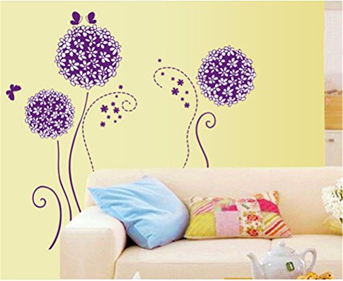Amaonm Purple Hydrangea Shape Dandelions Nursery Flowers Wall Decals Removable Butterfly Home Art Decor Decal Wall Stickers Murals for Kids Girls Room...