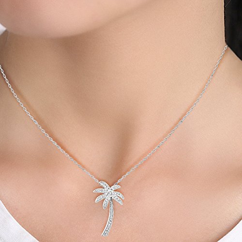 -. Title : Sterling Silver Diamond Accent Palm Tree Pendant Necklace, 18"