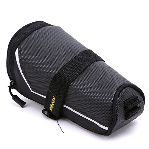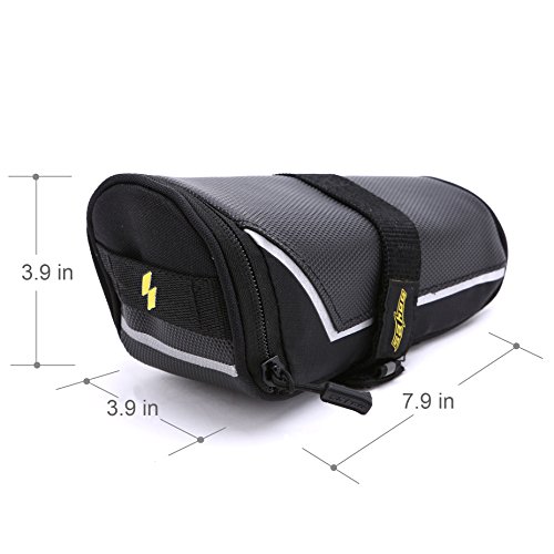 CYCLING SAFETY - Reflective strips around the saddle bag for safe riding at night or in the dusk. With a strap on the cover of the saddle bag, tail lights also can be mounted on it.