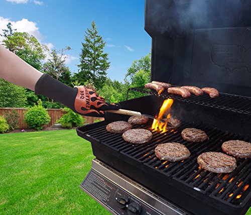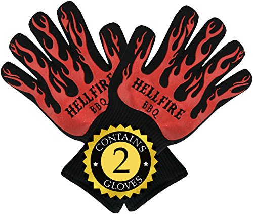 HellFire BBQ & Ove Gloves are Extremely Flame & Heat Resistant Barbecue Mitts with Silicone Fingers for Grilling, Smoker, Pit, Fireplace, Camping, or Kitchen Oven - EN407 Rated to 932 Fahrenheit