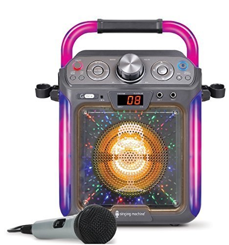 The G-Lite comes packed with awesome features for you to create fun-lasting singable moments. The G-Lite lets you play your music CDs and CD+Gs or stream audio via your Bluetooth compatible devices. Follow the karaoke lyrics on your TV screen via the included RCA cables. . Built with over 40 multi-colored LED lights on front grill, sides and handle that synchronize to the music plus speakers in wood cabinets for a crispy sound, the G-Lite is your party in the box!