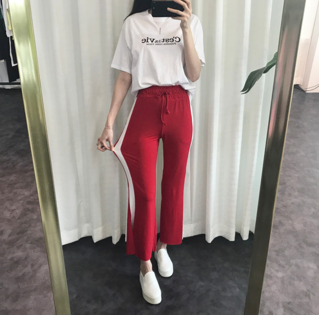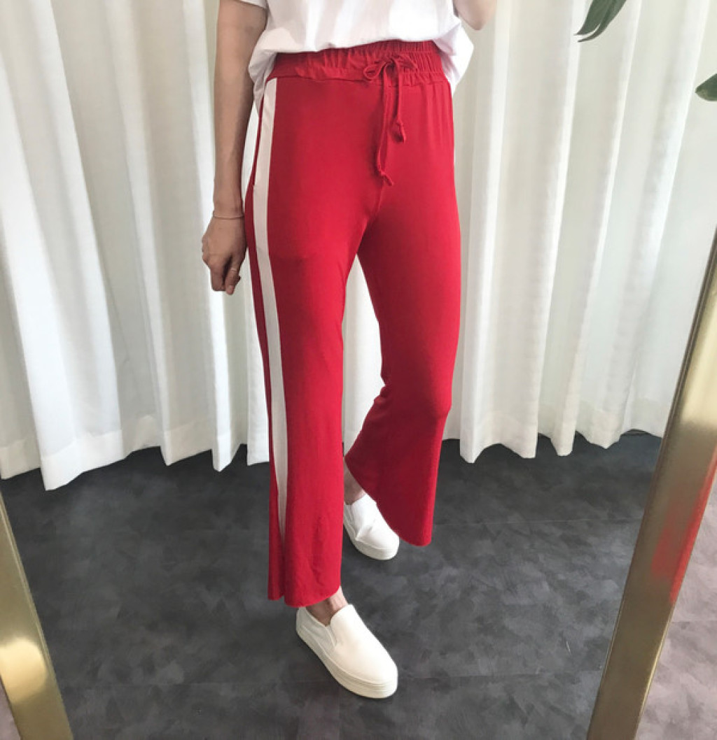 바지 옆면에 배색 포인트가 들어가 있고