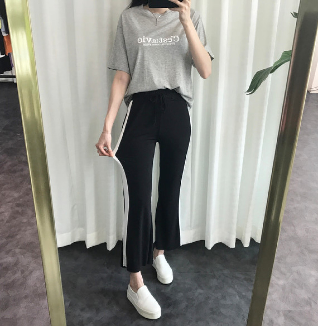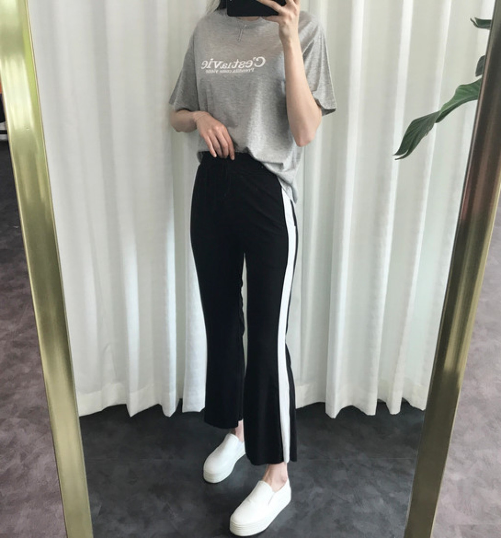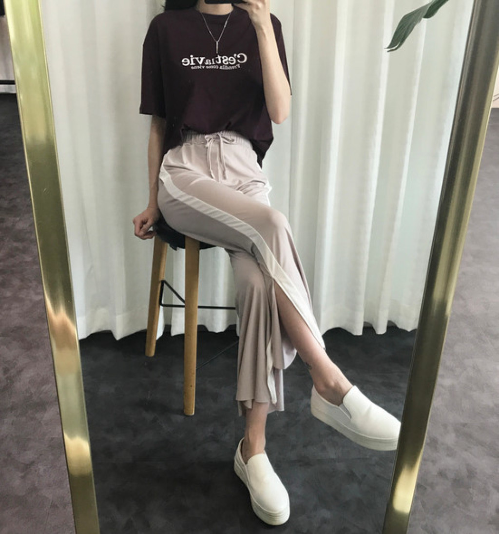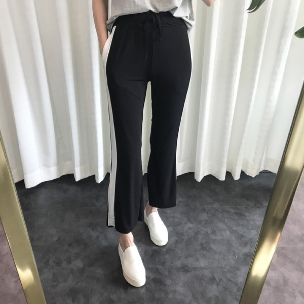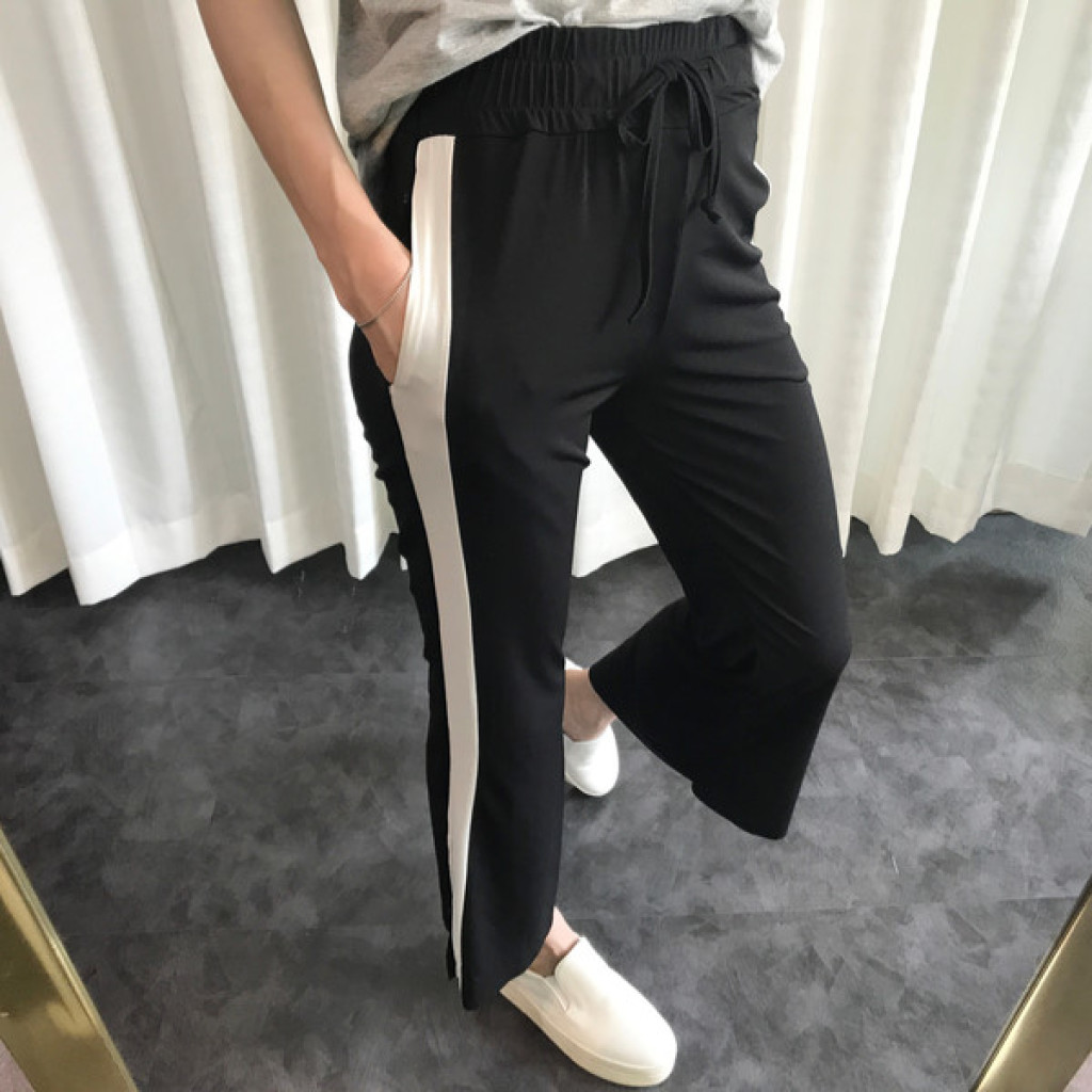 밑단에 트렌디한 트임이 있는 라인팬츠 입니다