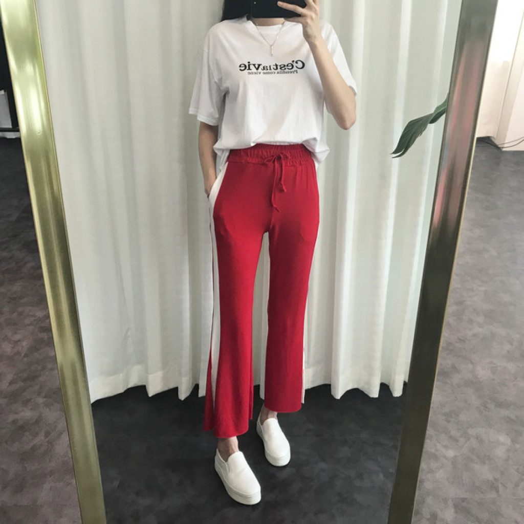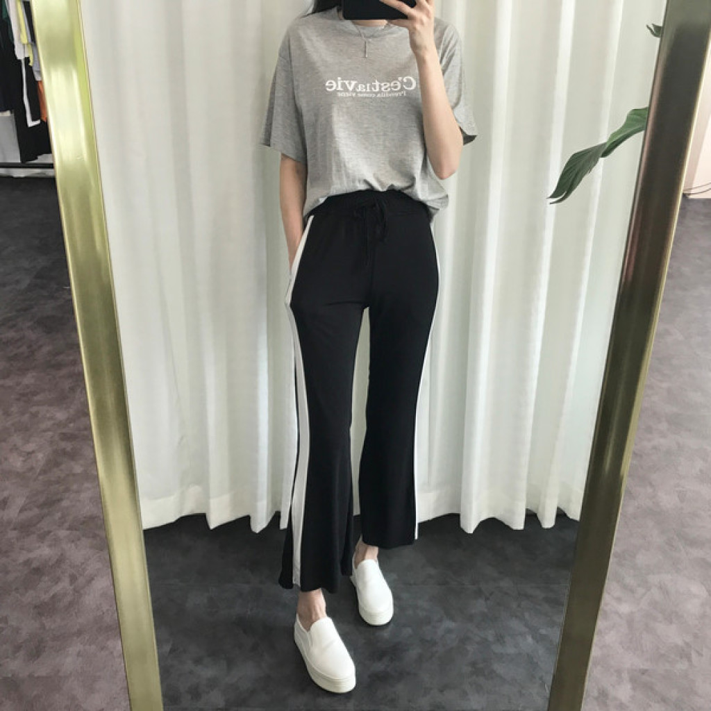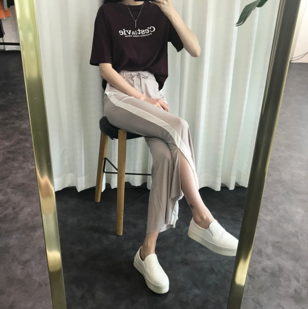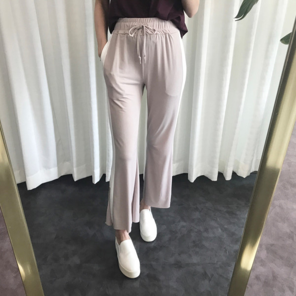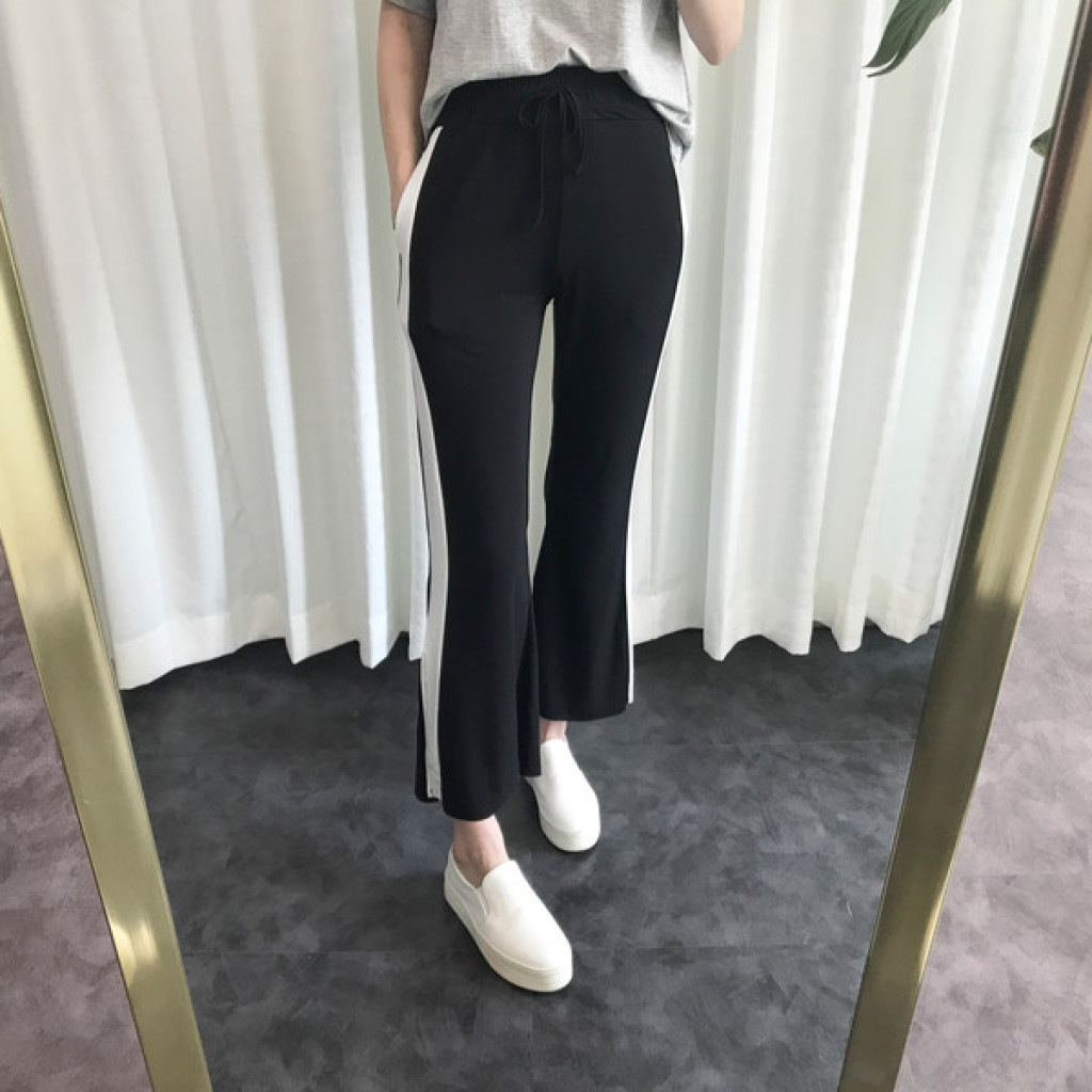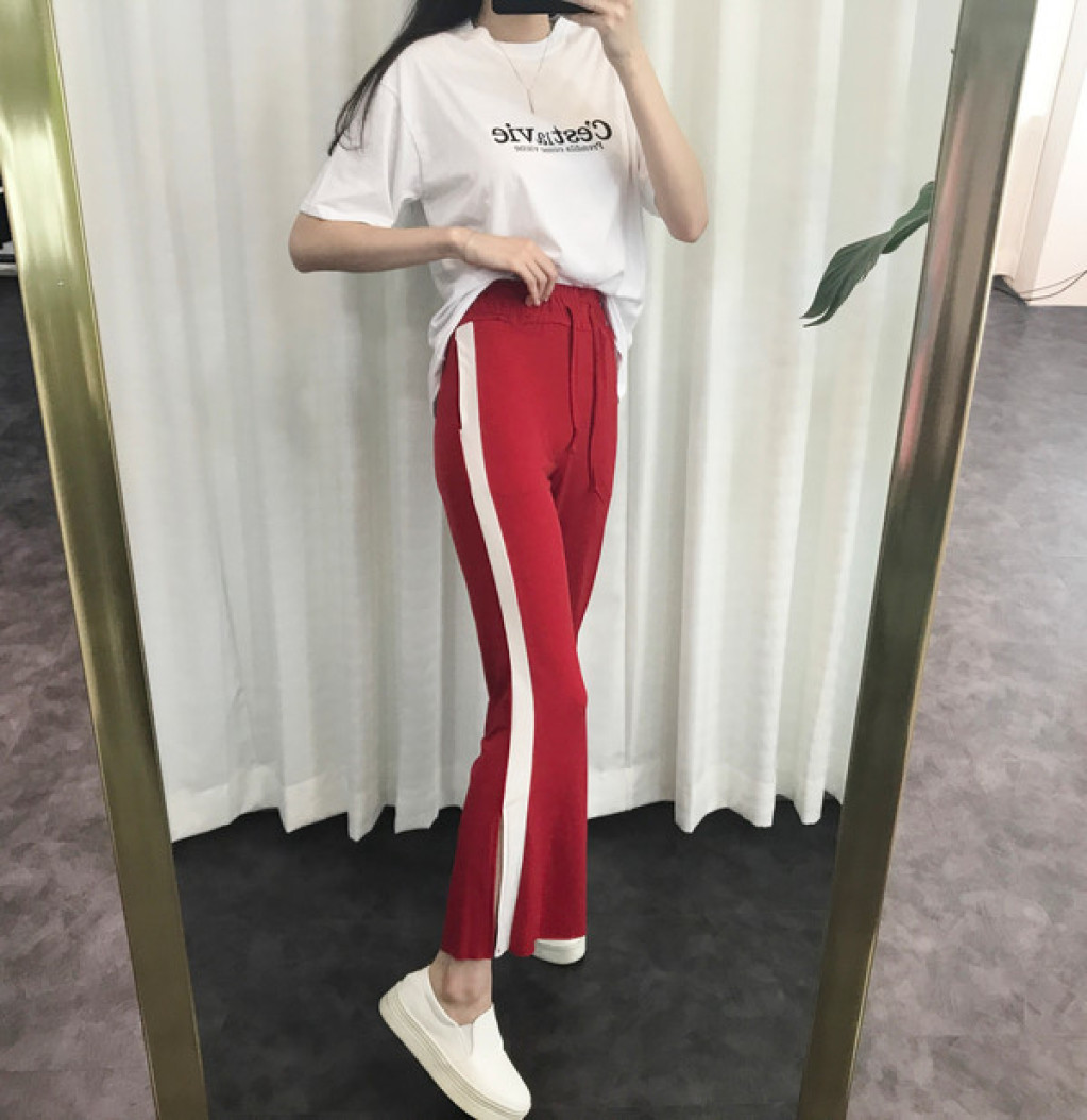 밑단에 트렌디한 트임이 있는 라인팬츠 입니다