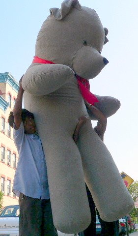 - Feature : *NOTE: PHOTOS TAKEN OUTDOORS FOR SIZE COMPARISON * USED FOR DEMONSTRATION PURPOSES ONLY / *NOTE: YOU WILL RECEIVE BRAND NEW MERCHANDISE (that has NEVER been outdoors) - BRAND NEW / Absolutely MASSIVE stuffed bear! Measures a staggering EIGHT feet tall - That's 96-inches of LOVE! / 100% Soft Polyester Filling - Weighs as much as a child - Ships in a box that can fit 3 people in it / Extremely hard to find giant-size bear. Wil make a VERY BIG impression - Made in the USA