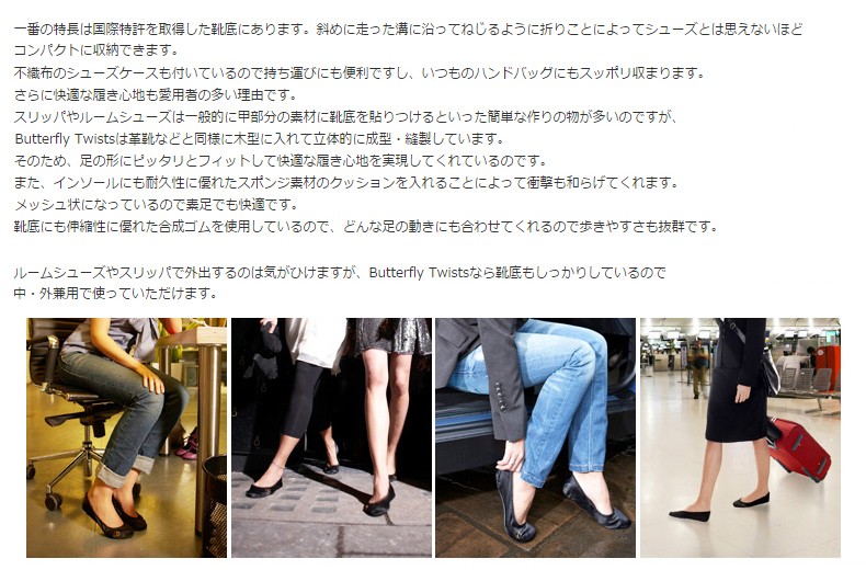| ポイント | 【ポイント5倍】 【あすつく不可/メール便不可/代金引換不可】 ◆BUTTERFLYTWISTS EMMA エマ 2カラー◆ 外履きはもちろん、ルームシューズとして、 オフィスでの履き換え用に、飛行機の機内履きに 便利なポケッタブルシューズです。 クラシカルなベルベット素材が上品な印象を与えてくれる1足です。 専用のシューズケースが付いているので持ち運びにも便利です。 バッグにもスッポリ収まります。 2013年のモデルから、アウトソール、ライニング、 インソールを改良し履き心地が向上しております。 -------------------- ※当店はBUTTERFLYTWISTS正規取扱店です。並行輸入品ではございません。 ※撮影は室内で行われており、ライティングにより実物と色味が少し異なる場合がございます。 ※当商品はメーカー在庫品です。7~10日前後の納期となります。 ※当商品は代金引換・コンビニ後払い不可となります。 ※商品の特性上、不良品以外の返品及び交換、出荷後のキャンセルはお受けできません。 予めご了承下さいます様、宜しくお願い申し上げます。 | |||||