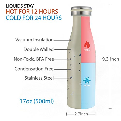 LARGE CAPACITY: 17 oz (500 ml) capacity, Lightweight design, the bottle will fit most of normal sized cup holders, perfect for your gym bag, car, bicycle and backpack to enjoy any outdoor activities.