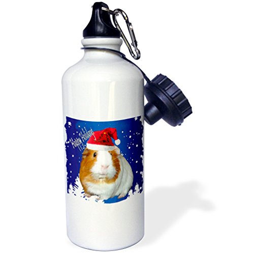 3dRose wb_4583_1 Guinea Pig Christmas Sports Water Bottle, 21 oz, White