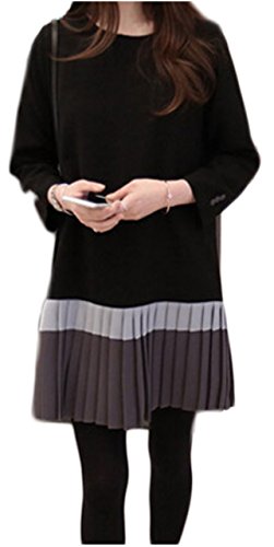 -. Feature : 裾元に薄いブルーとグレーのプリーツスカート仕様の切り替えデザインのワンピースです。 すとんと縦に落ちるシルエットで、ヒップが隠れるチュニック丈となっています。 落ち着きがありながらもメリハリのある色合いで、7分丈袖。長いシーズンご着用いただけます。 / 余計な物を省いたシンプデザインはカジュアルにもきれいめにも、合わせるアイテムを選ばず着回し自由自在。お尻まですっぽり隠れるチュニック丈とゆったりシルエットで上手に体型カバー。さらっとした肌触りの生地で、着心地が良いです。 / デニムやパギンスと合わせてチュニックとしての着用もでき、デイリーコーデにもお出掛けにも活躍する1着です。ニットワンピースはデニムとも好相性です。黒ワンピースには主張しすぎないシンプルなネックレスを合わせて大人っぽい雰囲気を演出。 / 一枚でワンピースとしてはもちろん、インナーにシャツを合わせたりデニムと合わせた大人カジュアルな着こなしにもオススメです。黒のプリーツスカートは、 コーデが合わせやすくヘビロテ必須です。オンオフ関係なく幅広いシーンで活躍できますよ!黒のプリーツスカートはクールにモード系コーデにもマッチします。 / 嬉しいサイズ展開豊富です♪ サイズ参考:肩幅/身幅/袖丈/着丈 (cm)【M】39/49/49/72【L】40/49/4973【XL】41/50/50/74【XXL】42/51/51/75【XXXL】43/52/52/76※寸法は平置きにて計測し、多少の誤差がある場合がございます。