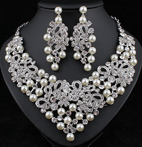-. Binding : Jewelry -. Brand : Janefashions -. Department : womens -. Feature : You are looking at gorgeous Imitated pearl cluster necklace set. Sparkling first class Clear Genuine Austrian Rhinestones and Imitated White Pearls are set on a beautiful Silver tone metal. The whole set shines a lot! This necklace set is perfect for any special occasions. Thanks for looking! / Size: Necklace is approx. 18 inches Long adjustable to 20 inches Long, center section is 3 inches Height, with lobster clasp. Earrings are for pierced ears, approx. 3 inches Long x 1-3/8 inches wide. / Condition: Brand New / Janefashions is a US trademark and seller Janefashions is its ONLY owner. We will pursue legal action against trademark infringement in case of UNAUTHORIZED sale or resale. -. Label : Janefashions -. Manufacturer : Janefashions -. Model : N1620 -. MPN : N1620 -. PartNumber : N1620 -. ProductGroup : Jewelry -. ProductTypeName : FASHIONOTHER -. Publisher : Janefashions -. Studio : Janefashions -. Title : Janefashions Daisy Faux Pearl Off White Austrian Rhinestones Bib Necklace Earrings Set N923