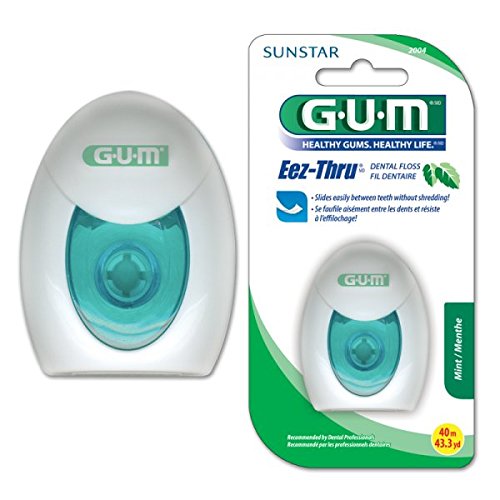 Studio : Sunstar Americas, Inc. Publisher : Sunstar Americas, Inc. Binding : Misc. Product Description GUM Eez-Thru floss is coated with a non-stick surface so that it easily slides between tightly spaced teeth and below the gum line to reach the dental plaque. If dental plaque is not removed frequently it can cause inflammation of the gums and lead to gum disease. GUM Eez-Thru is a monofilament made from PTFE, the common non-stick material that creates a satin-like finish that is extremely soft and gentle and also shred-resistant. 0