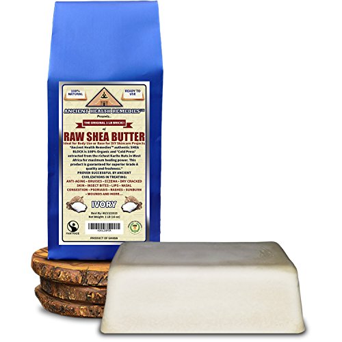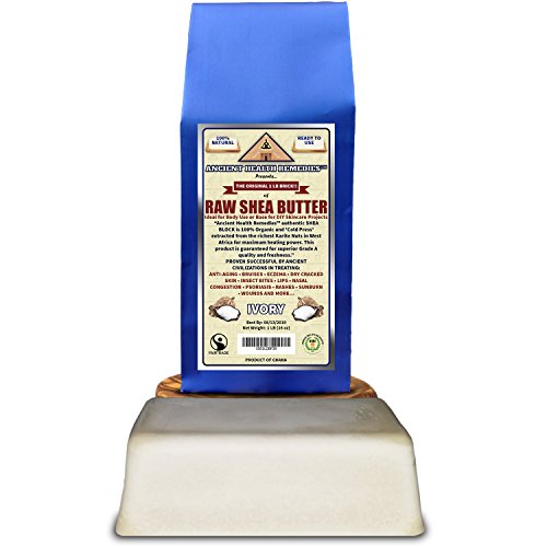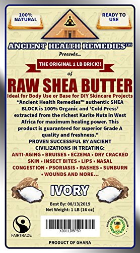Buy Ancient Health RemediesTM Best Quality, Cold-Pressed, Organic, Unrefined, Raw African Ivory SHEA BUTTER with Amazon's 'Satisfaction Guarantee' allowing you to purchase with confidence and free Prime shipping. Ancient Health RemediesTM all natural. superior quality Organic SHEA BUTTER has proven to be clinically effective in treating Acne, Anti-Aging Skincare, Arthritic Joint/Muscle Pains, Babies Rash, Bruises, Chapped Lips, Cuticle/Nails, Chemotherapy, Fortification, Cuts, Dandruff, Dark Spots, Dry, Damaged Skin and Feet, Eczema, Ethnic Hair, Dermatitis, Frostbite, Hemorrhoids, Hair Treatment, Insect Bites, Nasal Congestion, Outer Viral Infections, Psoriasis, Razor Burns, Red Itchy Skin, Stretch Mark Prevention, Scar Prevention on Fresh Wounds, Sunburn Relief, Tattooed Skin, Weak Hair/Scalp, Wrinkles and Much More. Ancient Health RemediesTM Organic, Ivory SHEA BUTTER is also the best choice on the market for Handmade and Industrial Manufacturers of Organic Skincare Products. Best All Natural Ingredient Base for All-Natural Cosmetics, Anti-Aging Cream, Babies Care Products, Beauty Products, Body Massage Oils, Body Lotion Making, Body Moisturizers, Handmade Body Butter Moisturizers, Healing Salves, Lip Balms, Organic Skincare Beauty Products, Natural Hair Products, Organic Shampoo, Stretch Cream and Whipped Shea Butter Products. EVERYONE should use Ancient Health RemediesTM Organic Ivory SHEA BUTTER for healthy, youthful and pleasant feeling skin. General populations in every city are forced to use city water saturated with chlorine thus harming the skin of your youth and making it uncomfortably dry. Our Organic SHEA BUTTER is the best all natural, organic alternative to popular, chemical based. skincare creams commonly sold in stores. Try yours today...hassle free, money back guaranteed and best price on Amazon.com. From 'Ancient Health RemediesTM', a company dedicated to the research and manufacture of the most successful, organic ancient health remedies of all time.Feature
