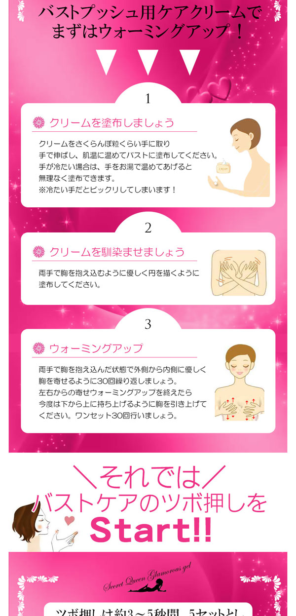 適量を手にとり、やさしくマッサージしながら塗布して下さい。 |